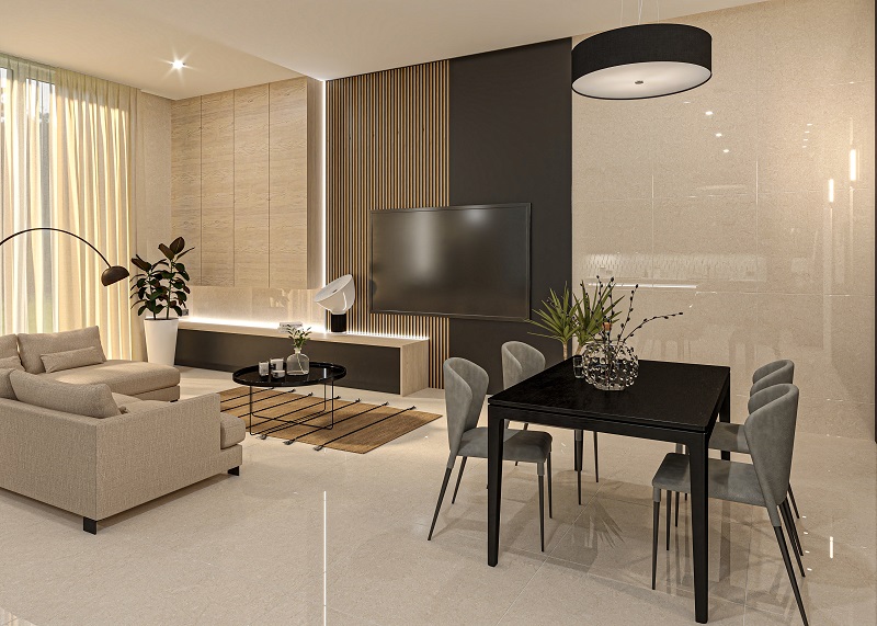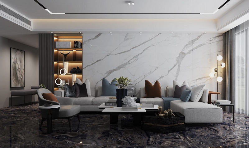 Nhà ở cao cấp ngày nay hướng đến phong cách tối giản, tinh gọn nhưng vẫn sang trọng. Gạch porcelain với tông màu trung tính, bề mặt tinh tế và kích thước lớn giúp tạo cảm giác không gian liền mạch, rộng rãi và đẳng cấp hơn.