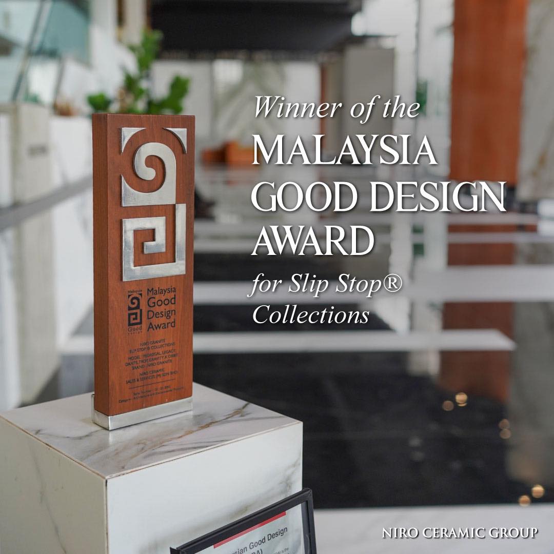 Niro Ceramic Group vinh dự nhận Giải thưởng Malaysia Good Design Award (MGDA) 2025 cho các bộ sưu tập Slip Stop®, thuộc hạng mục Sản phẩm Kiến trúc và Môi trường. Giải thưởng ghi nhận những thiết kế xuất sắc, cân bằng giữa đổi mới, công năng và giá trị thẩm mỹ.